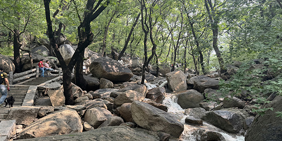 盤山 早8:30由客戶所在地出發去往天津,到達后午餐,餐后赴盤山,乾隆御題“早知有盤山、何必下江南”;盤山五峰與山西五臺山相對應,所以又稱“東五臺”,包括掛月峰、紫蓋峰、自來峰、九華峰、舞劍峰五座山峰,主峰掛月峰海拔864米,峰頂有一座唐代建的八角古塔。盤山八石為懸空石、搖動石、天井石、將軍石、晾甲石、夾木石、蛤蟆石、蟒石,搖動石是一塊狀似壽桃的巨石,用手觸動它就會輕輕晃動,令人稱奇(游覽約4小時)。后入住酒店