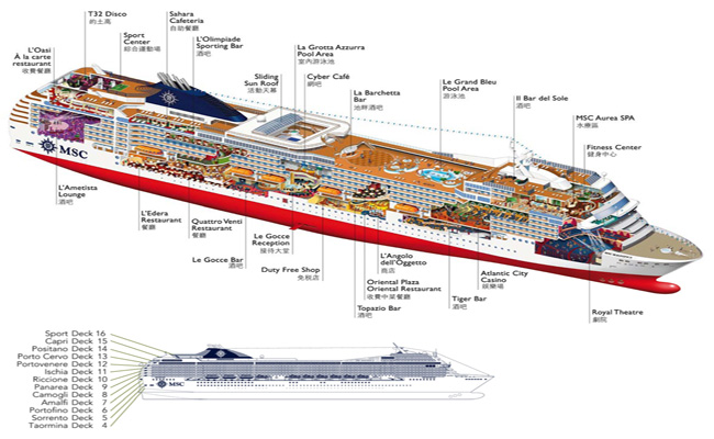 "意大利全資擁有的MSC地中海郵輪,于1987年成立,并于1995年正式命名為地中海郵輪,同年開始發展郵輪業務。目前,MSC擁有11艘郵輪。2010年全年共運送游客120萬人次。