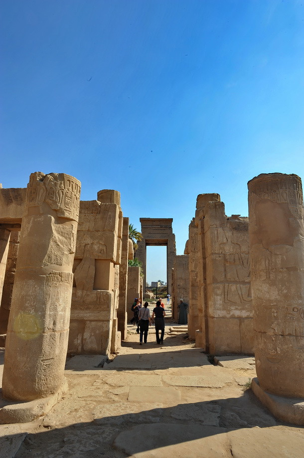 整個建筑群中,包括大小神殿20余座。院內有高44米,寬131米的塔門。大柱廳寬102米,深53米,其中共有134根巨型石柱,氣勢宏偉,令人震撼。其中最大的12根高23米,周長15米,其上足可容納50個人站立。晚上有聲光表演,用五彩的燈光變幻映照著遺址,配有解說詞和音樂,向游客敘述古埃及人民的生活情景。阿蒙神廟位于盧克索鎮北4公里處,是卡爾納克神廟的主體部分,這里供奉的是底比斯主神——太陽神阿蒙,始建于三千多年前的十七王朝,在此后的一千三百多年不斷增修擴建,共有十座巍峨的門樓、三座雄偉的大殿。