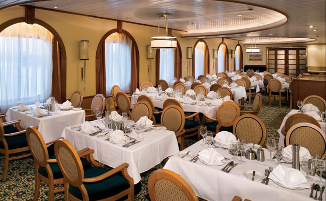船上每日8餐精致菜單,每日主題菜色或東方菜肴適時變化,頻獲瑞士餐飲協會、多家國際知名旅游雜志等連連頒獎.用餐時間之軟性飲料免費無限暢飲,讓您用餐更愉快。客房餐飲服務24小時開放服務。船上還有中文每日活動表以及精心設計安排的中文菜單,讓您自由自在享受船上設施及精肴。