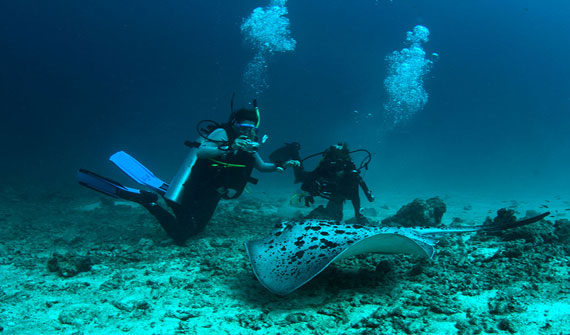 馬爾代夫是各種野生動植物棲息的理想之地,一直以來深深地吸引著無數水肺潛水與潛泳愛好者。到水下一游,即可領略熱帶魚類和珊瑚花園的絢麗色彩。只需從度假村乘船來到不遠的受保護潛水區,就有可能近距離接觸這些奇妙生物。無論新手還是老手,都會在安納塔拉潛水中心感到家一般的自在。您可以報名參加全球認可的國際專業潛水教練協會(PADI)證書課程,盡情探索海洋這一全新世界。如果您只想花一個下午觀賞野生動植物,可以報名參加呼吸器潛水初級班。對于經驗更豐富的潛水者,安納塔拉可以送您前往附近許多岸礁潛水。和潛水大師進行交流,定制完美的潛水之旅。