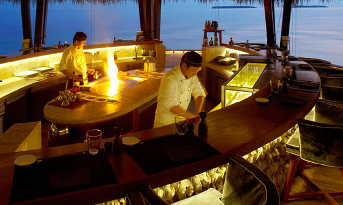 美食特色:亞洲美食。餐廳介紹:亞洲風格紅鯛魚和鮮嫩羊肉,在喜馬拉雅鹽塊上烹至完美,帶來獨特的口感深度與層次。 在開放式茅草屋頂下放松坐下,享受溫暖海風吹拂,欣賞開放式廚房里的忙碌景象。 駐場“侍鹽師”將為您的菜肴搭配完美調味品,迷人而又微妙的鹽之世界必定讓您大開眼界。
