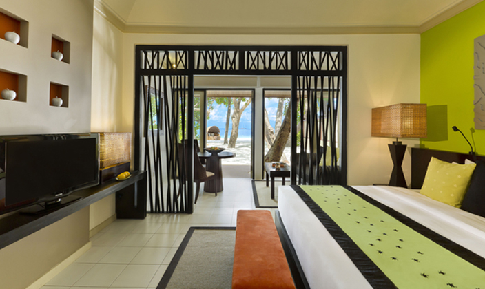 別墅就位于陽光燦爛的沙灘上,您可以一邊欣賞美麗的印度洋,一邊在您的專享秋千上盡情搖擺或靜靜地坐在走廊上。在晴朗湛藍的天空下,前往寧靜的私人花園享受戶外淋浴,在舒適的起居區和家人共度美好時光。