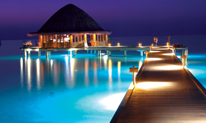 美食特色:新鮮海產(chǎn)和國際風(fēng)味美食。餐廳介紹:置身于帶茅草屋頂?shù)乃闲∥菹碛民R爾代夫精致美食。 開放式的餐廳無論室內(nèi)還是戶外都有燦爛的燈光照明,營造獨(dú)家用餐風(fēng)情。