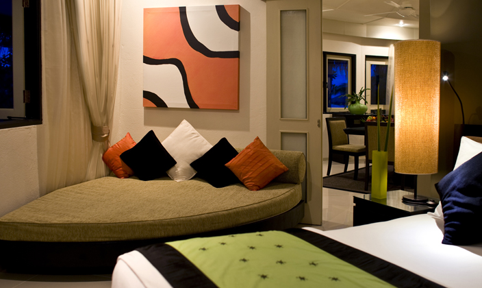 在您的別墅后院中打造一處舒適的角落,更有專享泳池和按摩浴缸等您前來體驗(yàn)。 別墅內(nèi)部裝飾采用對比強(qiáng)烈的濃艷色彩,為您的別墅內(nèi)馬爾代夫體驗(yàn)注入歡樂與活力。 臥室角落處設(shè)有一張沙發(fā)床,您可以在窗下安坐或愜意地做個美夢,獨(dú)立的起居區(qū)采用多種對比鮮明的顏色裝飾,明亮絢爛,兩側(cè)環(huán)繞著玻璃大窗。