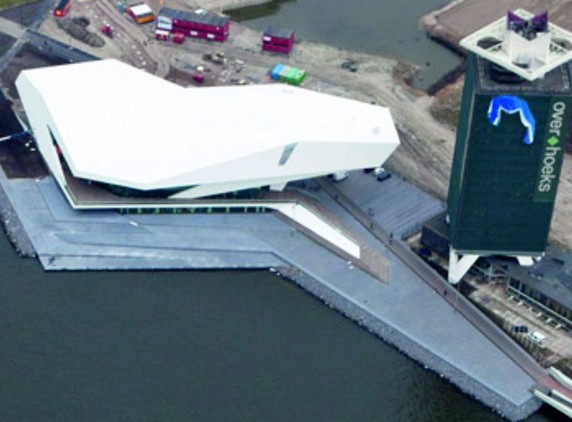 基地毗鄰 IJ 河,建筑外部的多層折板創造了一個過渡區,將基地與市中心歷史街區分隔開來。