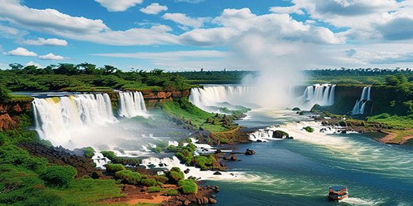 伊瓜蘇 早餐后,乘機飛往伊瓜蘇。抵達后驅車前往觀賞世界第一大跨度的依瓜蘇瀑布,該瀑布是目前世界上最寬的瀑布,位于阿根廷與巴西邊界上該河與巴拉那河合流點上游23公里處,為馬蹄形瀑布,高82米,寬4公里,1984年,被聯合國教科文組織列為世界自然遺產,游覽由275個瀑布組成的瀑布群,乘電梯進入棧道置身于飛流直下波濤洶涌的宏偉景觀之中。晚餐后入住酒店休息。