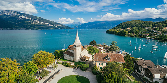 15:00 游覽安納西(約 1 小時):法國阿爾卑斯山區最美麗的小鎮,人稱 “ 阿爾卑斯山的陽臺”。安納西湖的水來自阿爾卑斯山的冰雪,被 認為是全歐最干凈的湖。湖水來自阿爾卑斯的高山雪水和雨水,綿 延 15 公里 ,如翡翠般碧藍耀眼。阿爾卑斯山融雪形成的湖泊、穿 城而過的運河、青黛色的遠山,以及近處的綠樹繁花,構成了一幅