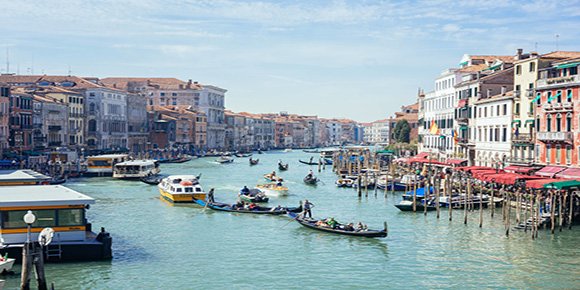 08:00 乘車前往游覽威尼斯,位于意大利東北部,是亞得里亞海威尼斯灣 西北岸重要港口,主建于離岸 4 公里的海邊淺水灘上,由 118 個小 島組成,400 多座橋梁連成一體,以舟相通,有“水上都市”、“百 島城” 、“橋城 ”之稱。搭乘擺渡船(約 30 分鐘)前往逐漸頹毀 沉沒的水上古都參觀 ,徒步參觀有『黃金教堂』之稱的圣馬可大教 堂(約 20 分鐘) 、圣馬可廣場(約 20 分鐘) ,游覽連接道奇宮 及其附屬監獄的嘆息橋(約 20 分鐘)。特別安排乘坐貢多拉游船