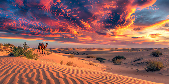 【迪拜沙漠沖沙】: 搭乘旅游巴士前往沙漠沖沙集合點,換乘4WD越野吉普車進入金色的沙漠進行冒險家游戲—沖沙;這里有阿拉伯風情的駱駝農場,在沙丘頂峰停留片刻,欣賞沙漠日落;然后進入沙漠營帳,可以穿著阿拉伯民族服飾拍照,品嘗阿拉伯特色的水煙,繪制阿拉伯民族手繪,晚餐安排阿拉伯風味簡餐。欣賞當地特色舞蹈表演。