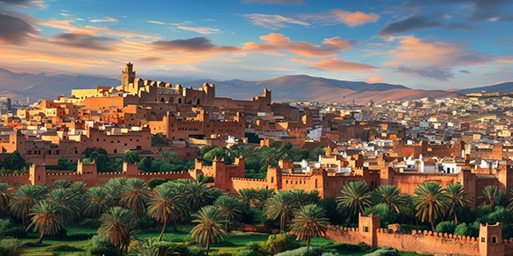 舍夫沙萬酒店早餐后,參觀被美國著名雜志(Traveler)評為全球最浪漫的 10 大城市之一的九世紀的菲斯古城(游覽時間約 2 小時),探訪那里的中古世紀老城區(1981 年被聯合國教科文組織 UNESCO 列為世界文化遺產)中的 Attarine BouInaniamedersas (古蘭經經學院)、Nejjarine 泉、外觀伊德里斯陵墓(MoulayIdrissZaouia)(古都修建者)和外觀世界第一所大學——卡拉維因大學(Qarqouiyyin)。之后前往臭名昭著的“大染缸”(皮革染坊)、銅盤子、地毯、馬賽克、阿甘油等手工藝作坊;可游覽到眾多店鋪(菲斯古城為開放式自由購物場所,并非旅行社安排購物店,商品質量參差不齊,請謹慎購買):面包店、銅器店(含珠寶)、皮具店(含染坊)、紡織品店、阿甘油、馬賽克等。午餐于百年古跡餐廳享用當地特色餐。之后前往摩洛哥伊斯蘭古都城梅克內斯:梅克內斯古城于 1996 年作為文化被列入《世界遺產名錄》。古城墻雄偉壯觀,以有「勝利、凱旋」之意曼索爾城門( Bab Mansour)聞名于世;(由于梅克內斯整體維修,城門只做外觀)之后前往梅克內斯以北 30 公里古羅馬北非遺跡-沃魯比利斯城(游覽時間約 30 分鐘),據記載,公元 1 世紀時,這里曾經是一座繁華城市,整個城市呈現出一派欣欣向榮景象。現在這里留有保存完好凱旋門和劇場白色石圓柱。甚至連古城街道、居民住房、油磨房、公共浴室、市場等都依然清晰可見,這里還有許多鑲嵌式壁畫。晚餐后入住酒店休息。