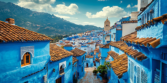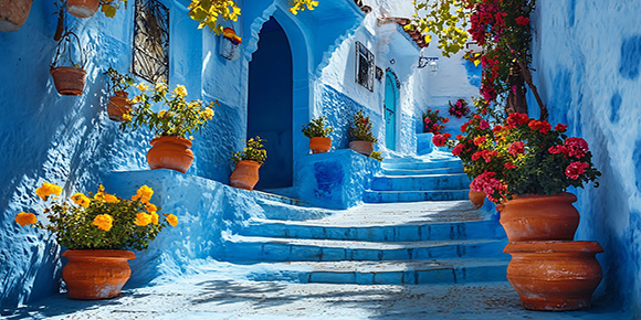 ? 藍色小鎮—舍夫沙萬:以其古老的傳統藍色建筑風貌而聞名于世。舍夫沙萬建在山坡上,周圍山谷連綿起伏,藍色的小鎮就像一顆藍寶石一樣鑲嵌在這里,異常的光彩奪目,曾有一種說法,說是全球有三大著名的藍城,它們是希臘的圣托里尼、摩洛哥的舍夫沙萬和印度的焦特普爾