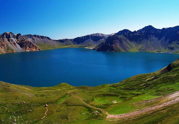 天池有幾百米深,一年有三分之二的時間云霧遼繞,唯有如我們這樣幸運之人才可有福一睹其神韻光彩,但在我看來不過是一深水池而己,并且類似于此的大者如新彊天山之大天池,小者如