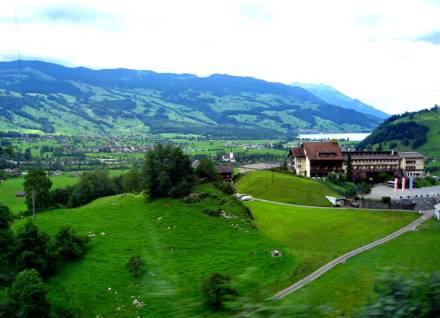 當(dāng)時我就一直在心里想:究竟有什么面貌特色使她那么迷人呢?汽車離開漢諾威之后,一直穿行于丘陵叢林之間,沿途森林蓊郁蔥蘢,間或可見一幢幢玲瓏剔透的尖頂農(nóng)舍,掩映在綠樹青山之間,既幽雅,又別致,恍若走進了一幅富于異國情調(diào)的風(fēng)景畫里。