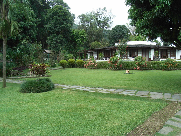 整個(gè)小島就是一座熱帶植物的花園,紅艷熱剌的花朵開遍每個(gè)角落。鵝卵石鋪成的小路通向每個(gè)安靜的房間,樹枝上搖晃著鐵皮雕花的燈罩,古樸美麗。房間都是一個(gè)有青石屋頂?shù)牡桶椒浚T前有小花園,白色的涼椅,可以在室外喝下午茶。房間更是可愛,在窗邊有長(zhǎng)長(zhǎng)的臥榻,依在窗邊,可以看湖光山色。如果天氣足夠好,還可以看到云霧繚繞間積雪的山頂。