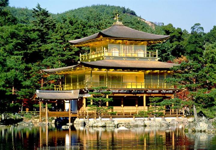 金閣寺建于1379年,原為足利義滿將軍的山莊,后改為禪寺。“金閣寺”一名源于足利義滿修禪的舍利殿,因其外以金箔裝飾,民眾遂以金閣殿稱之,寺院也因此被喚作金閣寺。其后金閣寺建筑幾乎皆遭毀損,保存至近代的金閣殿亦在1950年的火災(zāi)中被毀,今日的金閣殿是1955年亦原物重建而成。殿外金箔則在1987年重貼,1994年金閣寺被評(píng)為世界文化遺產(chǎn)。