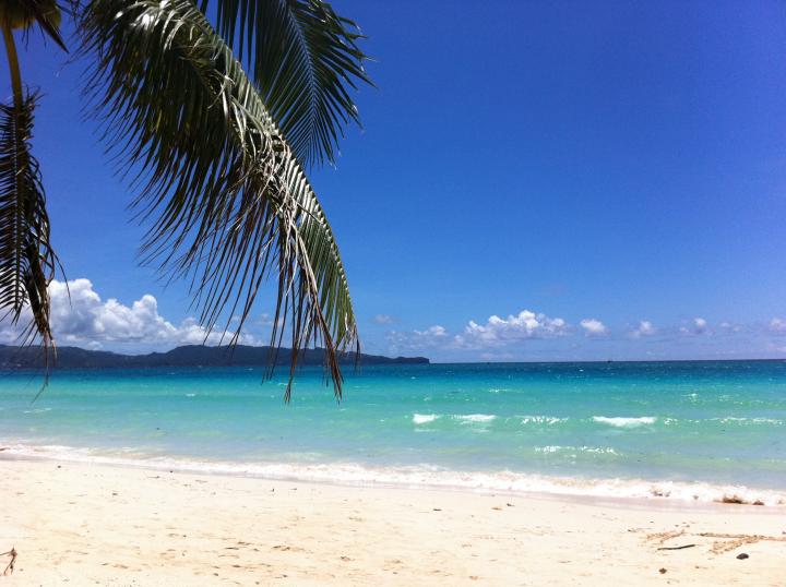 菲律賓的長(zhǎng)灘只有顏色,沒(méi)有形狀。海水清澈,呈現(xiàn)出可愛(ài)的寶石藍(lán),靠近海灘的海水是淡綠色,更遠(yuǎn)一點(diǎn)是翡翠色。在這里,只有陽(yáng)光,沒(méi)有時(shí)間。每個(gè)人都有大把的時(shí)間可以荒廢在海灘上、海水里,在海邊的酒吧中。