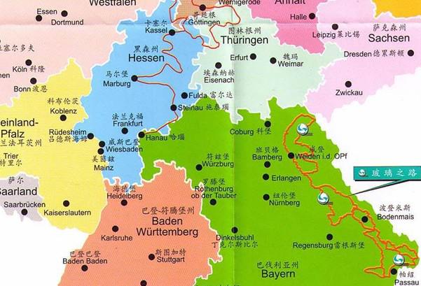 往北看的話就是五個州了,位于東面的是薩克森州,往西面走的話就是圖林根州,然后就是黑森州,在德國這里有一個非常著名的森林——黑森林就位于這里,除此之外,這里的